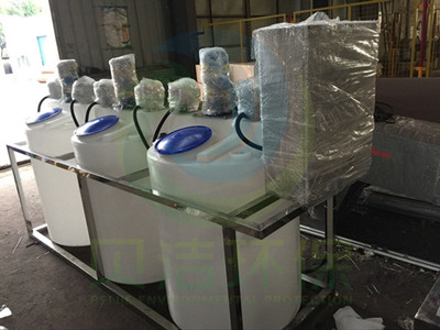 加藥裝(zhuāng)置是以計量泵為主要投加設備、將溶藥(yào)箱、攪拌器、加藥裝置