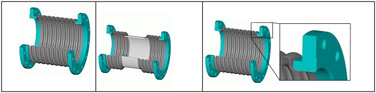軸(zhóu)向內壓式波(bō)紋管(guǎn)膨脹節的平板法蘭連接:為了螺栓連接到(dào)管(guǎn)道係(xì)統中,任何一種類型的法蘭都可(kě)以應用在金屬波紋管膨(péng)脹節上。鍛鋼和平板(bǎn)法蘭(lán)可以匹配2.5Mpa到5.0Mpa的壓力和(hé)溫度等級,通徑標準可從15mm到5000mm。特(tè)殊法蘭,如活套法蘭(lán)或者角向法蘭尺寸可從300mm到1800mm。任(rèn)何尺寸的法蘭均(jun1)可定製。